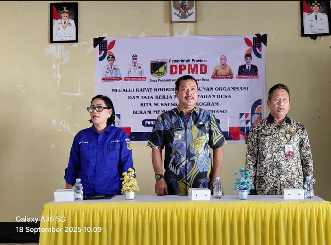Tolitoli,lensabidik.online – Dinas Pemberdayaan Masyarakat dan Desa (DPMD) Provinsi Sulawesi Tengah menggelar Rapat Koordinasi (Rakor) terkait Susunan Organisasi dan Tata Kerja (SOTK) perangkat desa. Kegiatan ini dilaksanakan di Aula Kantor Dinas PMD Kabupaten Tolitoli pada hari Rabu, 18 September 2025.